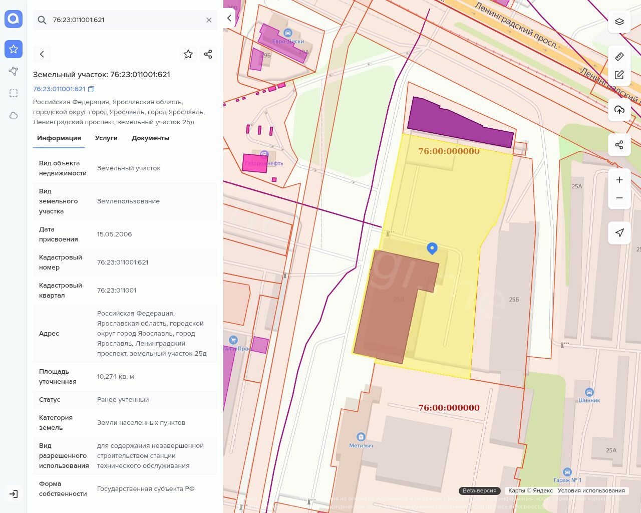 Вид разрешённого использования земельного участка: Иной вид Готовность объекта в %: 91 % Кадастровый номер объекта: 76:23:011001:3752 Местоположение земельного участка: Российская Федерация, Ярославская область, городской округ город Ярославль, город Ярославль, Ленинградский проспект, земельный участок 25д Площадь земельного участка: 10274 м^2 Кадастровый номер земельного участка: 76:23:011001:621 Предельные параметры застройки: данные отсутствуют