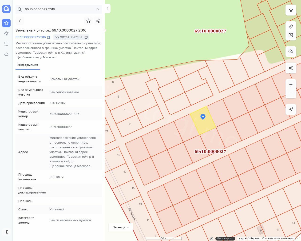 Адрес: Местоположение установлено относительно ориентира, расположенного в границах участка. Почтовый адрес ориентира: Тверская обл, р-н Калининский, с/п Щербининское, д Маслово.