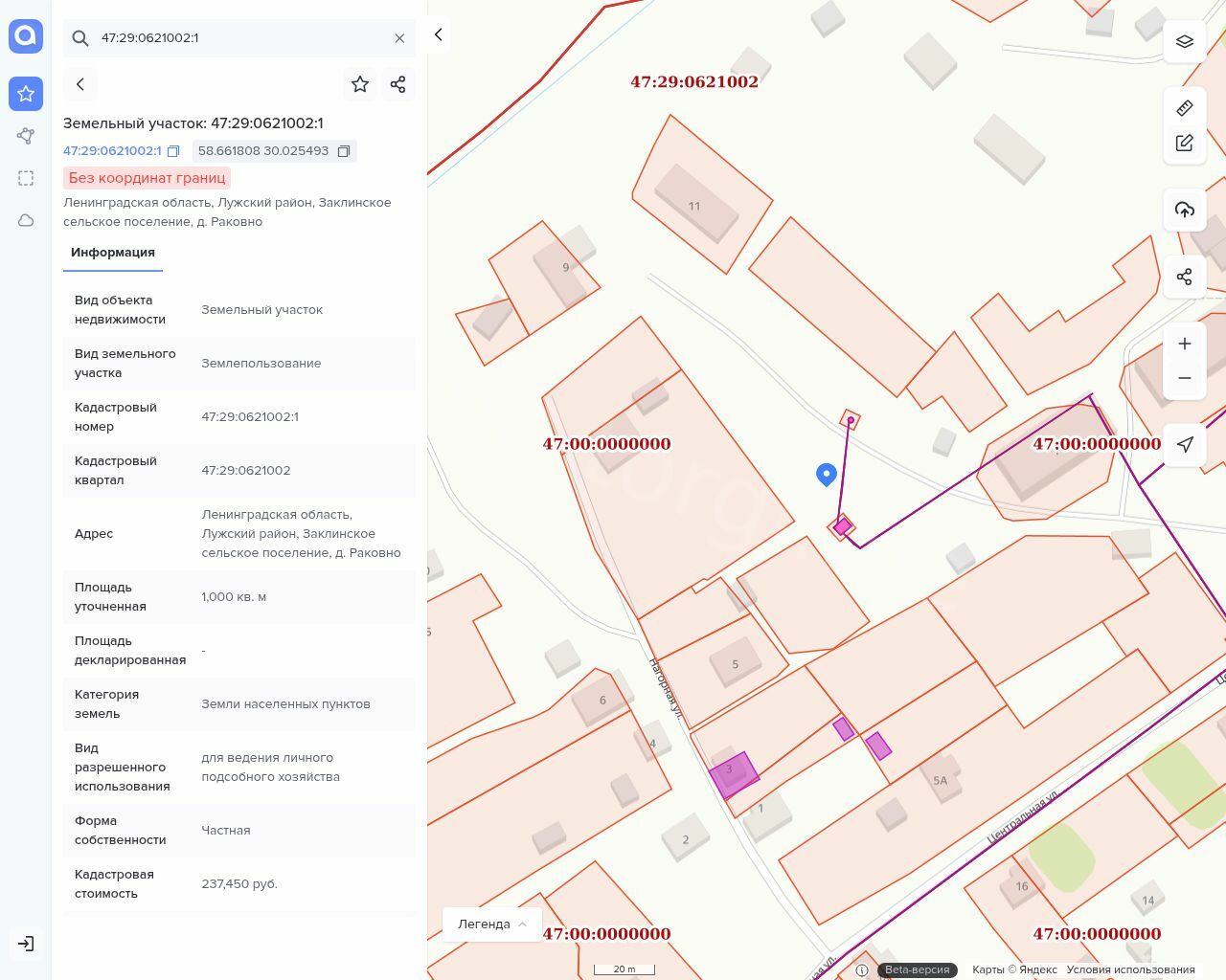 Лот №1. Земельный участок. Категория земель: Земли населенных пунктов Вид разрешенного использования: для ведения личного подсобного хозяйства Площадь: 1000 кв.м. Кадастровый номер 47:29:0621002:1. Граница земельного участка не установлена в соответствии с требованиями земельного законодательства. Адрес: Ленинградская область, Лужский район, Заклинское сельское поселение, д. Раковно