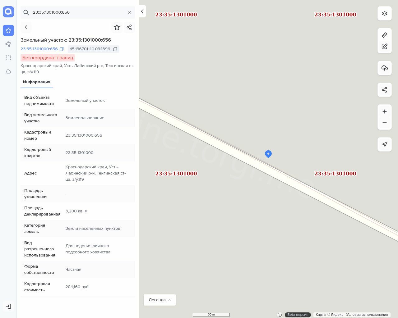 Земельный участок, площадь: 3 200 кв.м., категория земель: Земли населенных пунктов, разрешенное использование: Для ведения личного подсобного хозяйства, кадастровый номер: 23:35:1301000:656