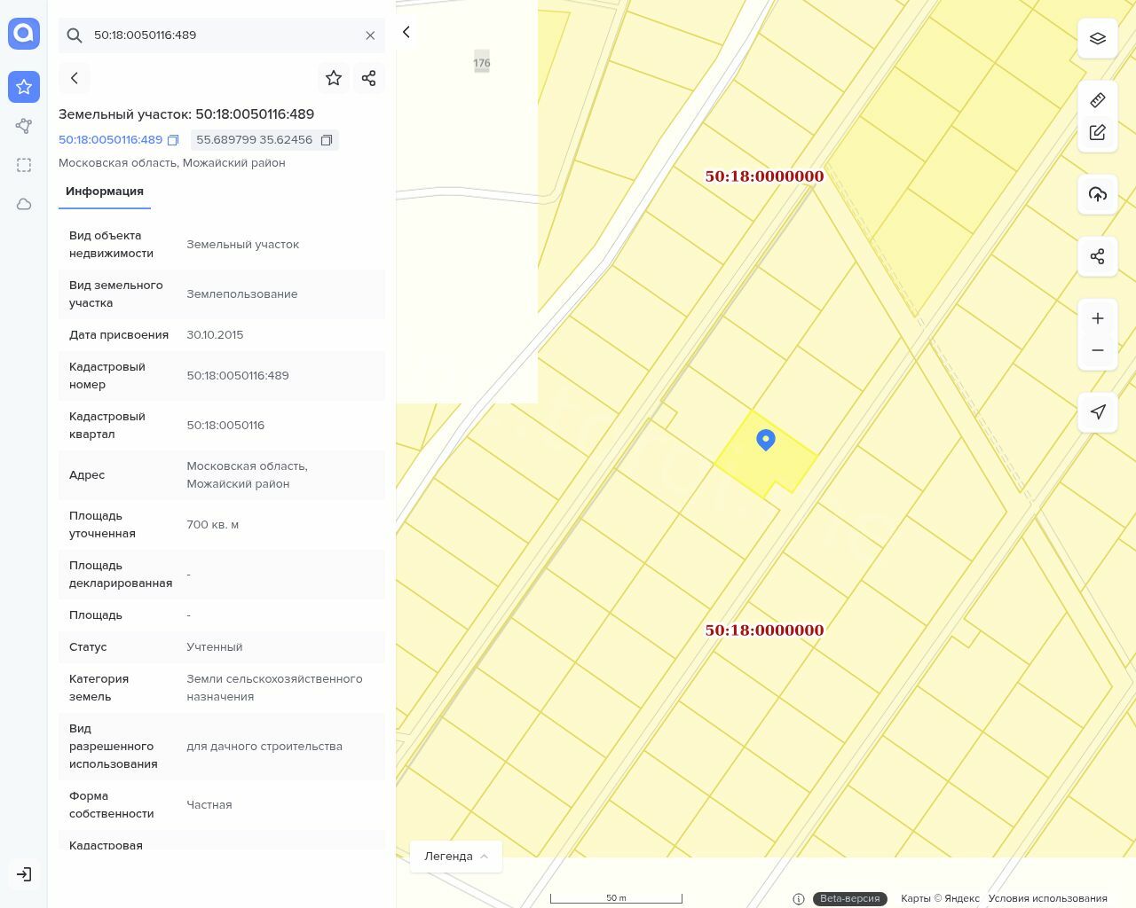 Лот № 1. Земельный участок общей площадью 700 кв.м. с кадастровым номером 50:18:0050116:489