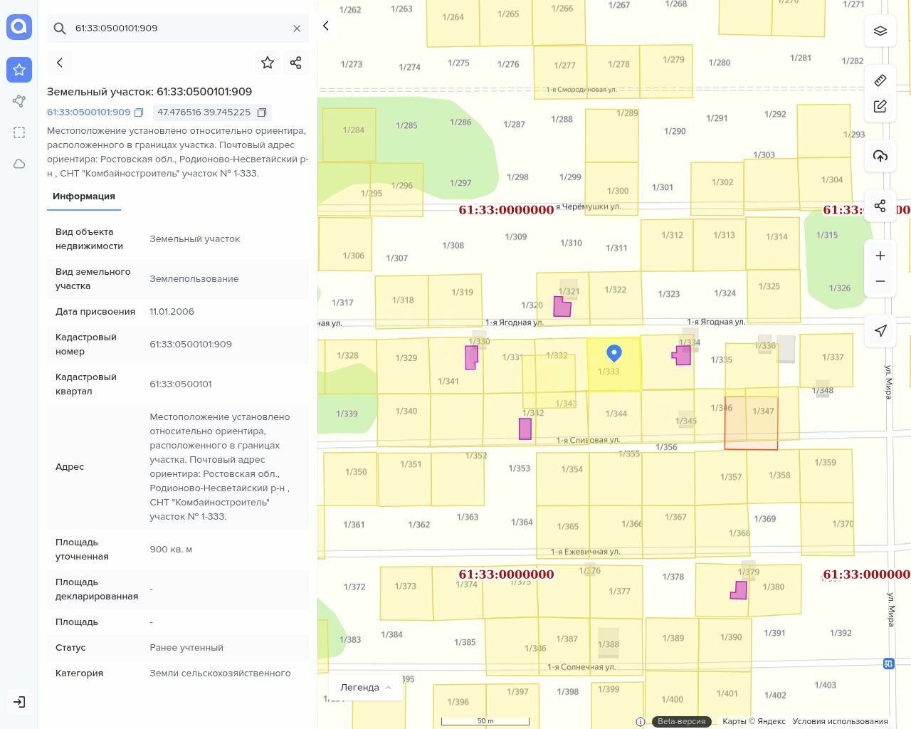 Адрес: Ростовская область, Родионово-Несветайский район, СНТ "Комбайностроитель", участок 1-333.