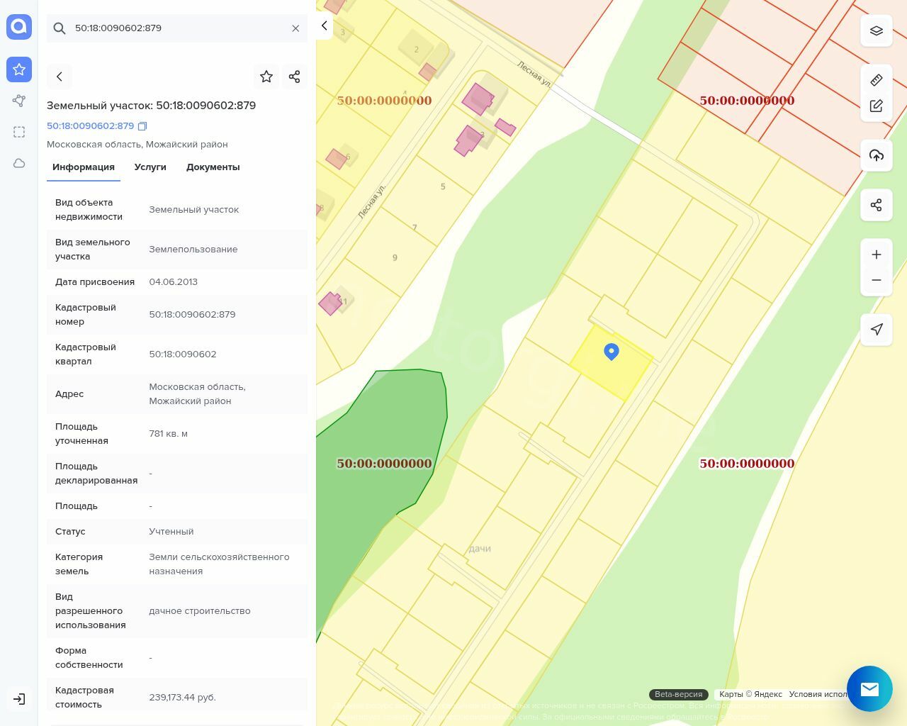 Лот № 46. Земельный участок. Кадастровый номер: 50:18:0090602:879. Категоря земель: земли сельскохозяйственного назначения, разрешенное использование: дачное строительство, общая площадь 781 кв. м.