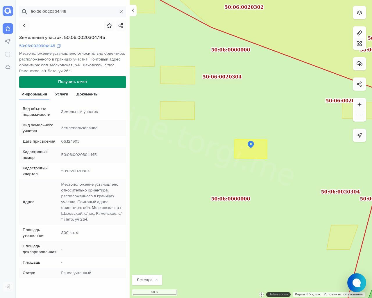 Лот №1. Земельный участок, с кадастровым номером:50:06:0020304:145 (номер регистрации: 50:06:0020304:145-50/157/2023-3)
