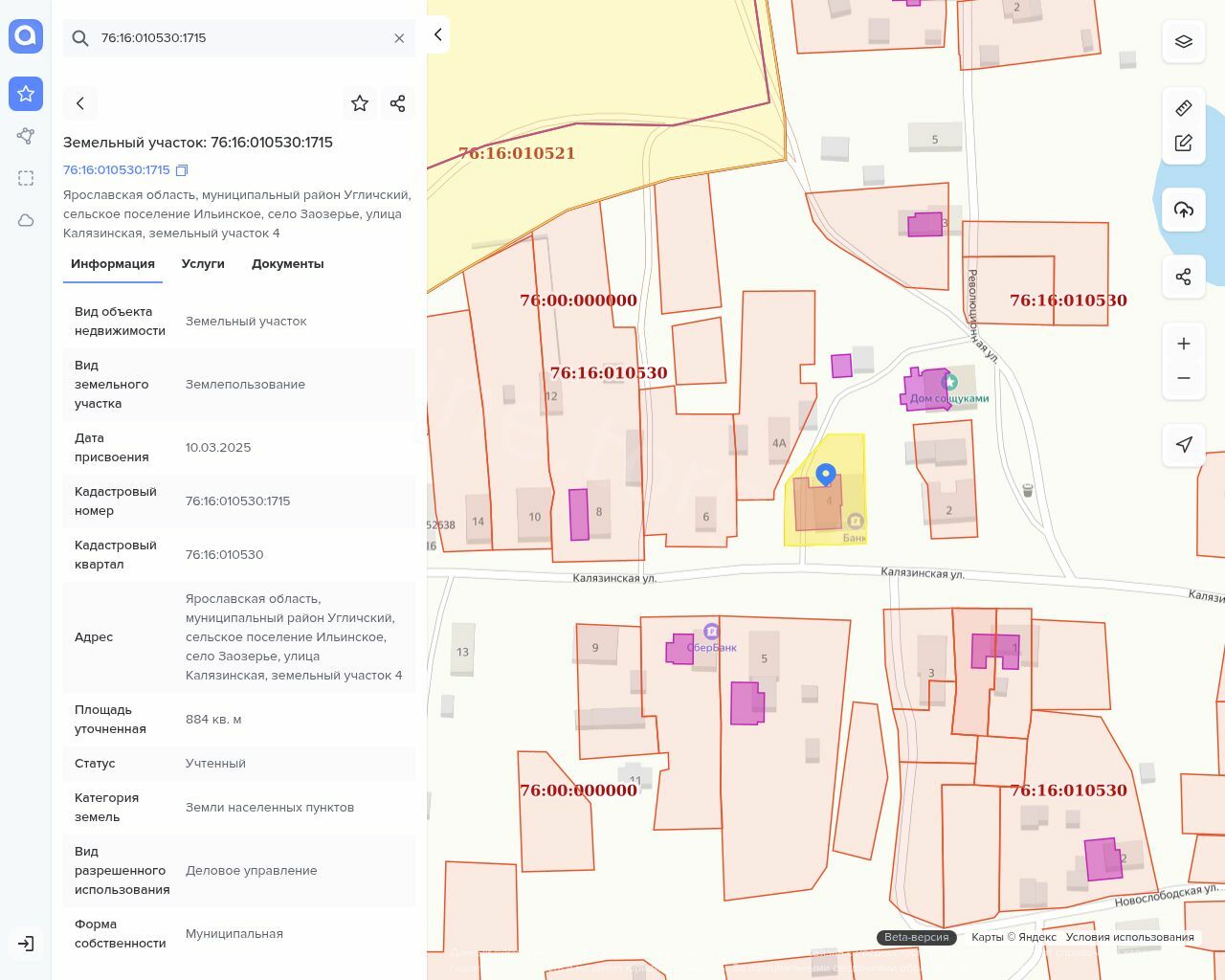 Нежилое здание с кадастровым номером 76:16:010530:977, общей площадью 321,1 кв.м, с земельным участком с кадастровым номером 76:16:010530:1715, общей площадью 884 кв.м, расположенное по адресу: Ярославская обл., муниципальный район Угличский, сельское поселение Ильинское, с. Заозерье, ул. Калязинская, д.4