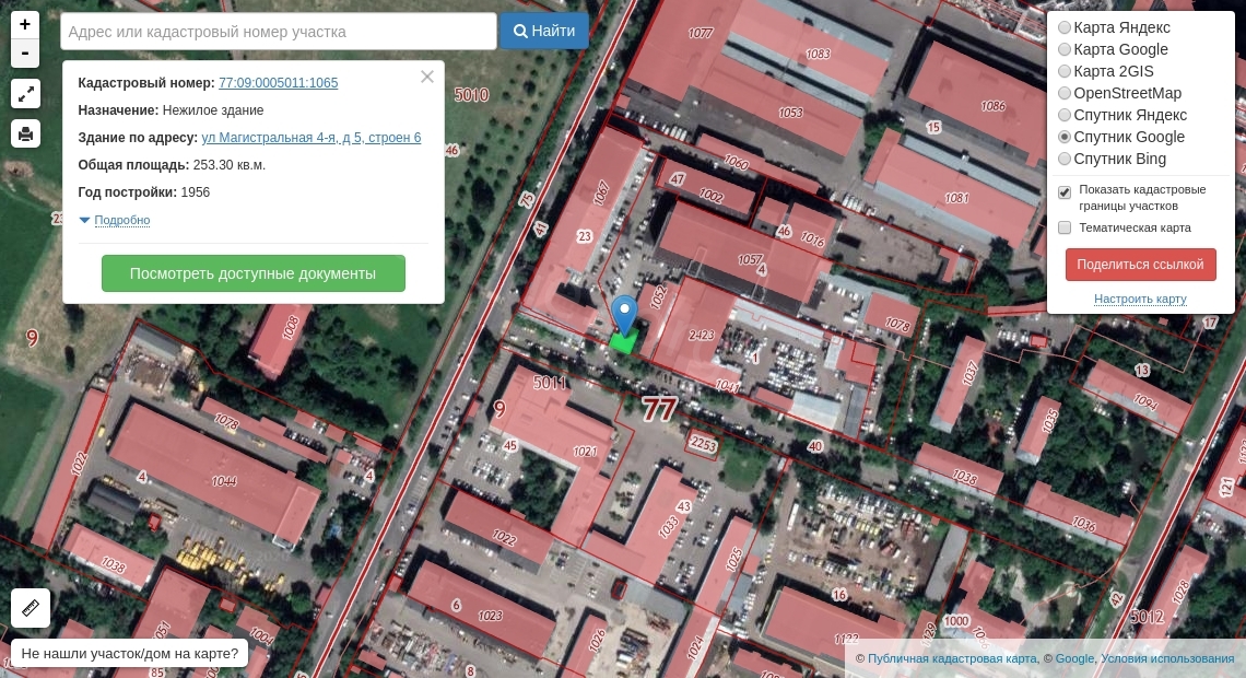 Здание, назначение: нежилое, этажность: 1, общая площадь, 514,9 кв. м, кадастровый № 77:09:0005011:1078, Адрес: Российская Федерация, г. Москва, вн.тер.г. муниципальный округ Хорошевский, ул. 4-я Магистральная, д. 5, стр. 11;