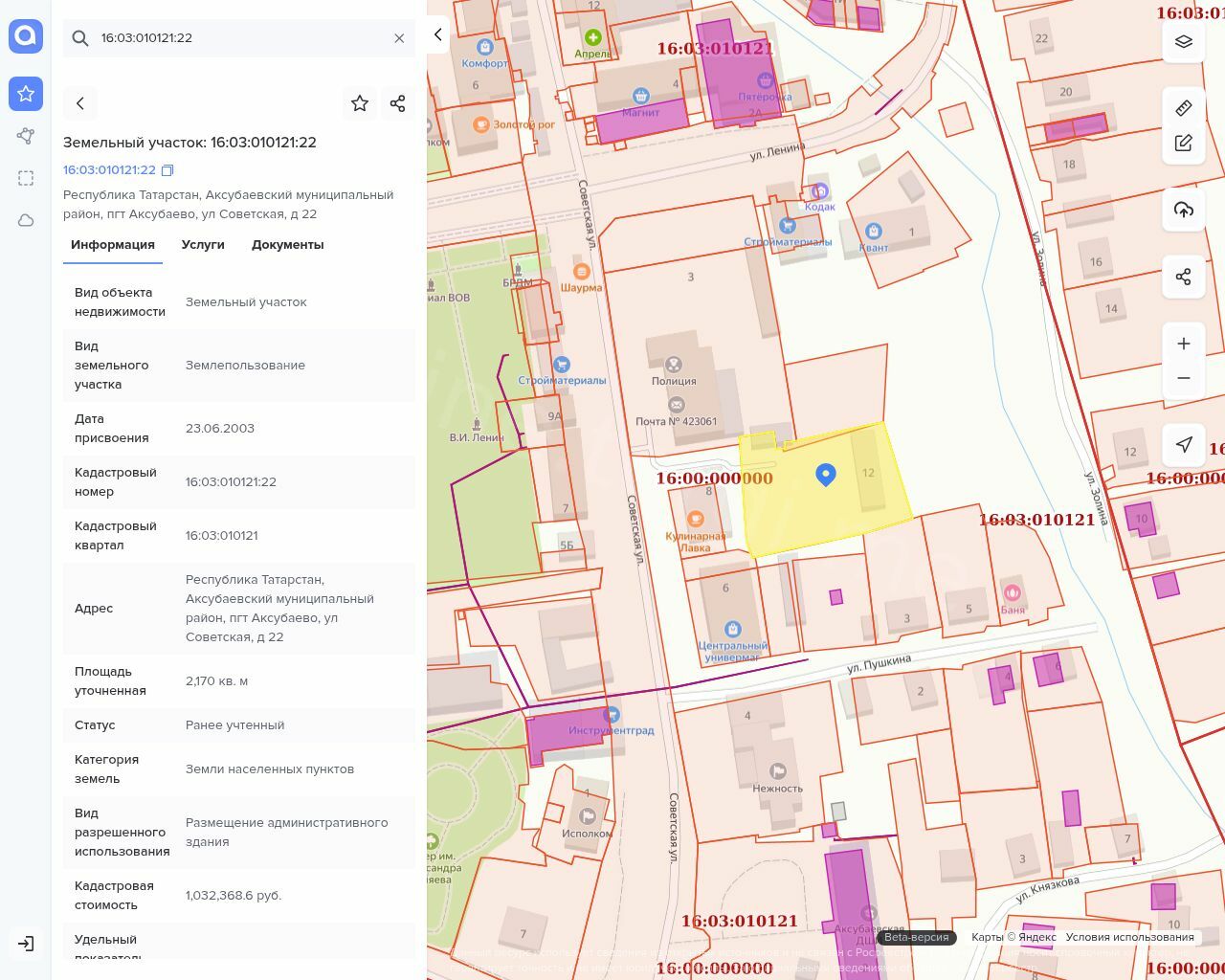 Местонахождение имущества: Респ Татарстан, м.р-н Аксубаевский, г.п. поселок городского типа Аксубаево, пгт Аксубаево, ул Советская, дом 22