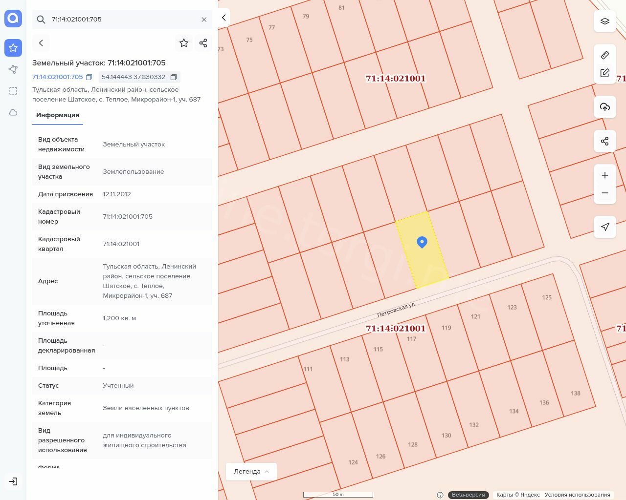 Земельный участок с кадастровым номером 71:14:021001:705, общей площадью 1200 кв. м.