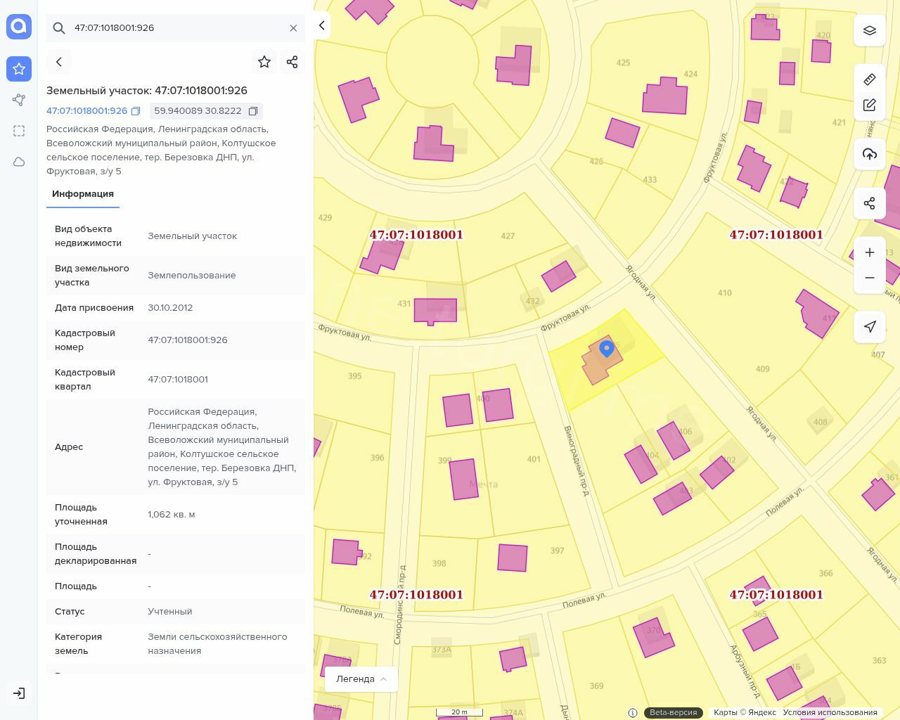 Адрес: Ленинградская область, Всеволожский муниципальный район, Колтушское сельское поселение, тер. Березовка ДНП, ул. Фруктовая, з/у № 5, дом 5