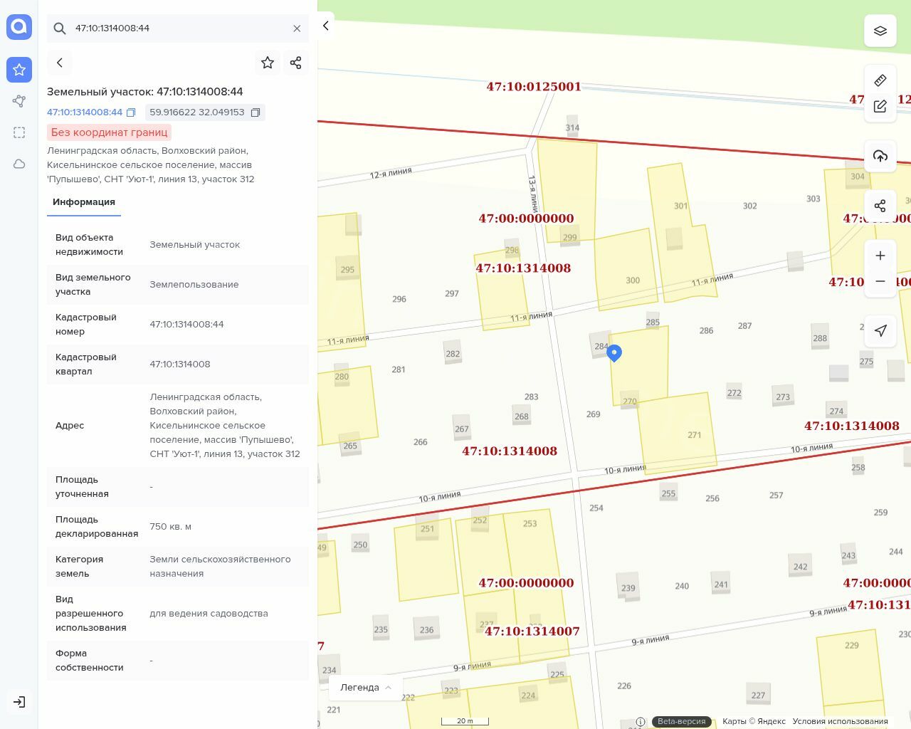 Адрес: Ленинградская область, Волховский район, Кисельнинское сельское поселение, массив Пупышево, СНТ «Уют 1», линия 13, участок 312