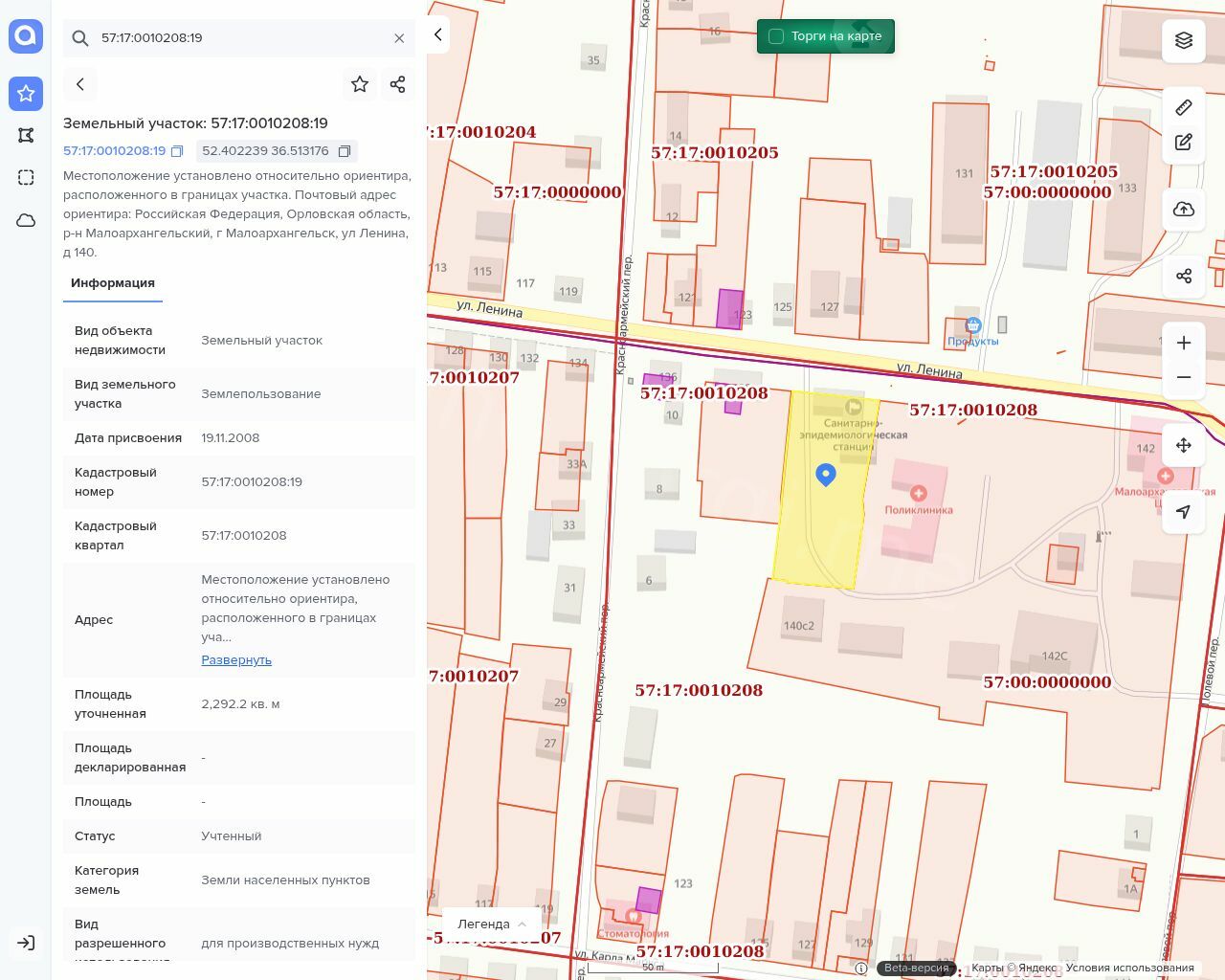 Местонахождение имущества: обл Орловская Россия, Местоположение установлено относительно ориентира, расположенного в границах участка. Почтовый адрес ориентира: Российская Федерация, Орловская область, р-н Малоархангельский, г Малоархангельск, ул Ленина, д 140., 140 Категория объекта: Имущественные комплексы Форма собственности: Федеральная собственность