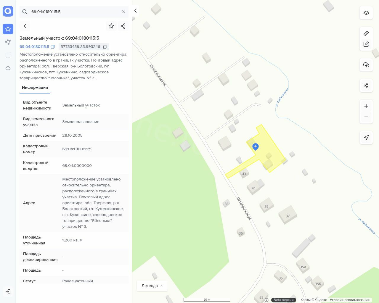 Земельный участок, кадастровый номер: 69:04:0180115:5, площадь 1200 +/- 12, категория земель: земли населенных пунктов, вид разрешенного использования объекта недвижимости: для ведения садоводства