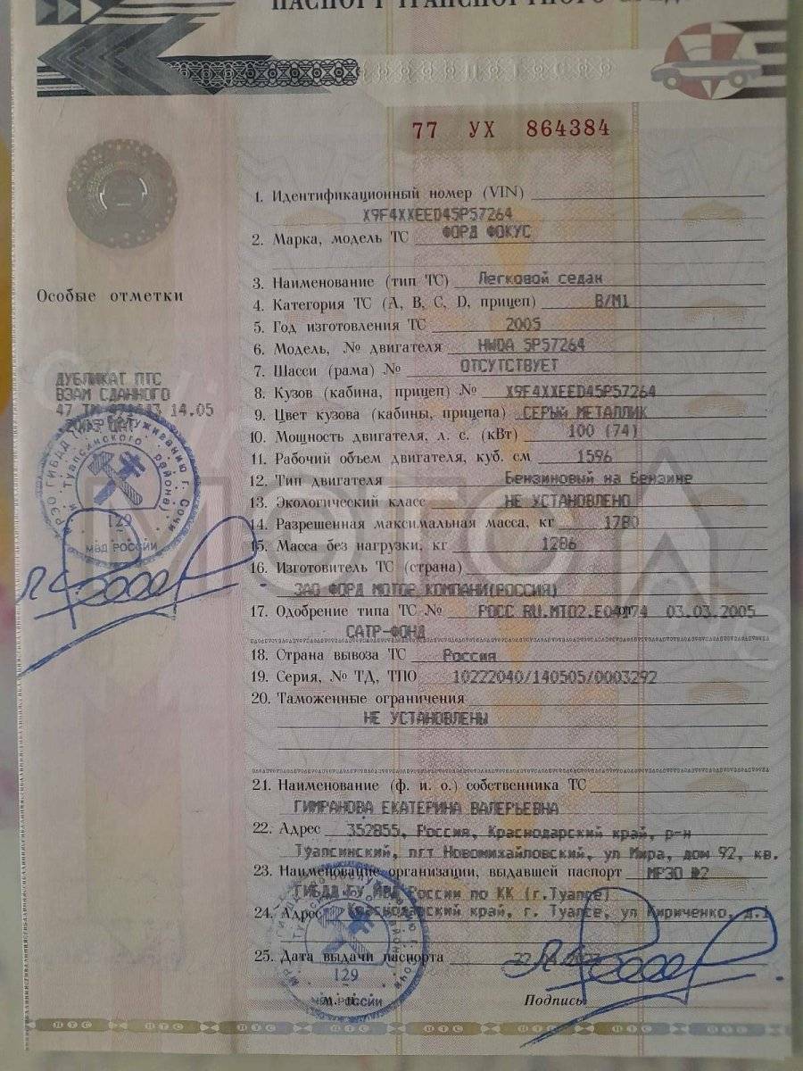 Автомобиль Ford Focus, 2005 года выпуска, VIN: X9F4XXEED45P57264, гос. рег. знак Е694ЕХ193
