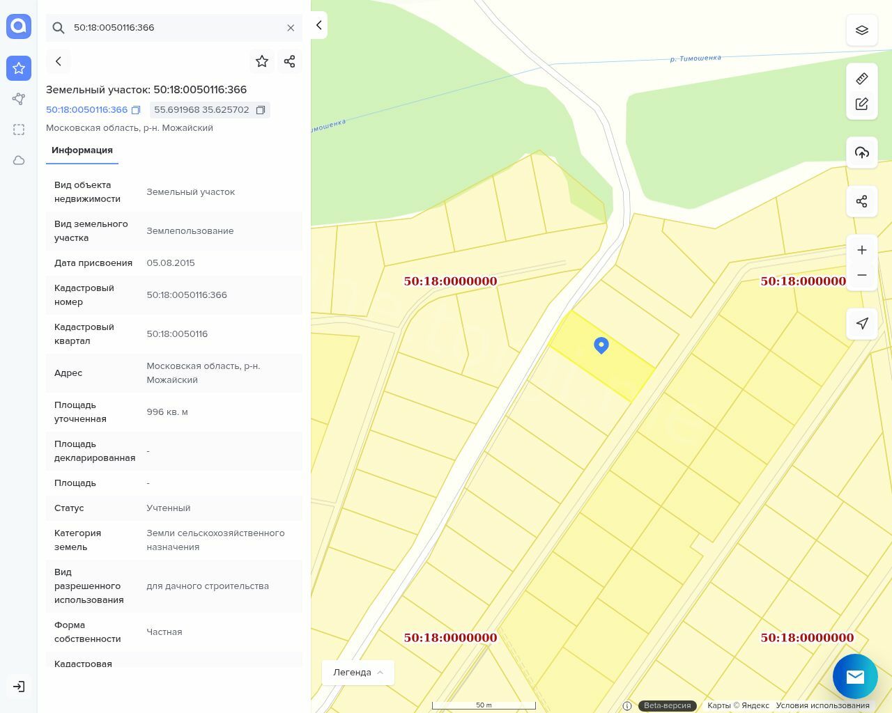 Земельный участок, общей площадью 996 м, с кадастровым номером № 50:18:0050116:366