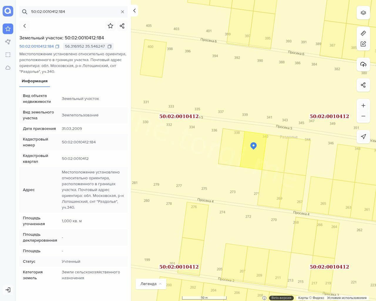 Адрес: Местоположение установлено относительно ориентира, расположенного в границах участка. Почтовый адрес ориентира: обл. Московская, р-н Лотошинский, снт "Раздолье", уч.340.