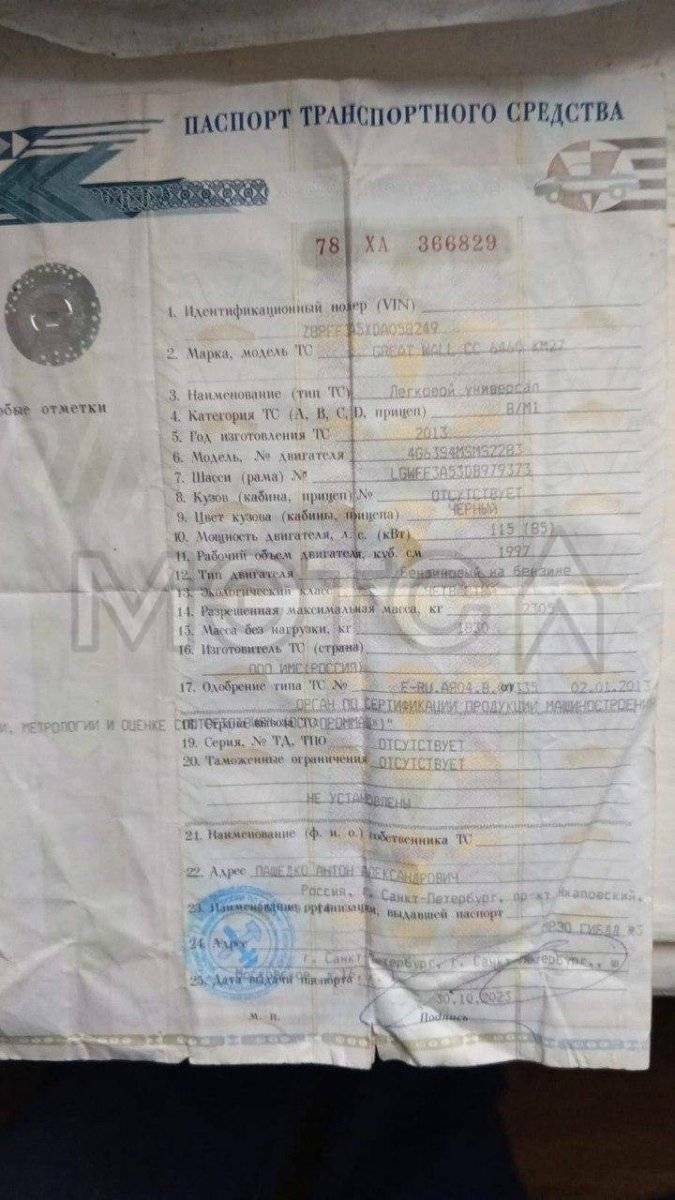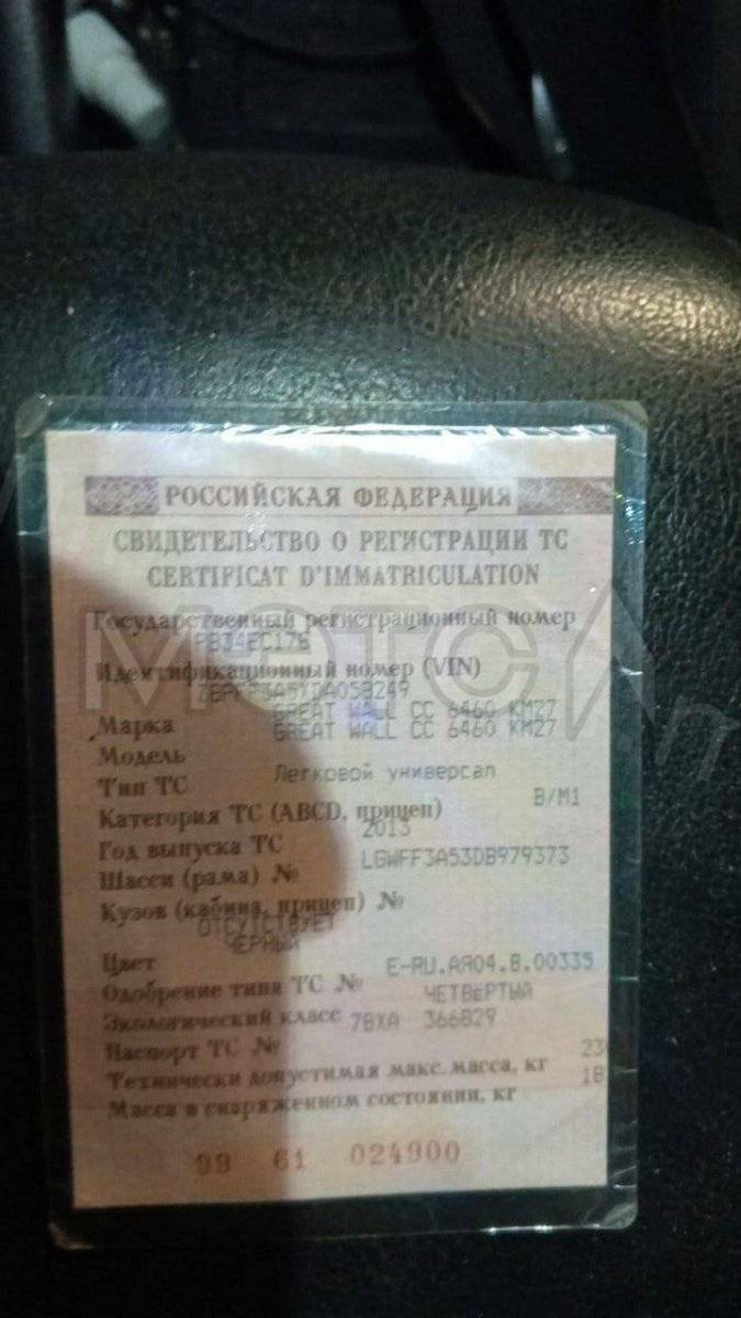 Транспортное средство Great Wall Hover H3 CC 6460 KM27; VIN Z8PFF3A5XDA058249, 2013 года выпуска.