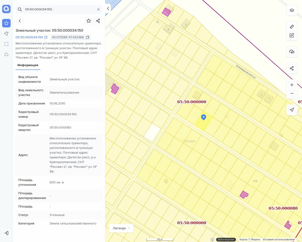 Адрес: Дагестан респ, р-н Кумторкалинский, СНТ 'Рассвет-2', кв. 'Рассвет' уч. № 86